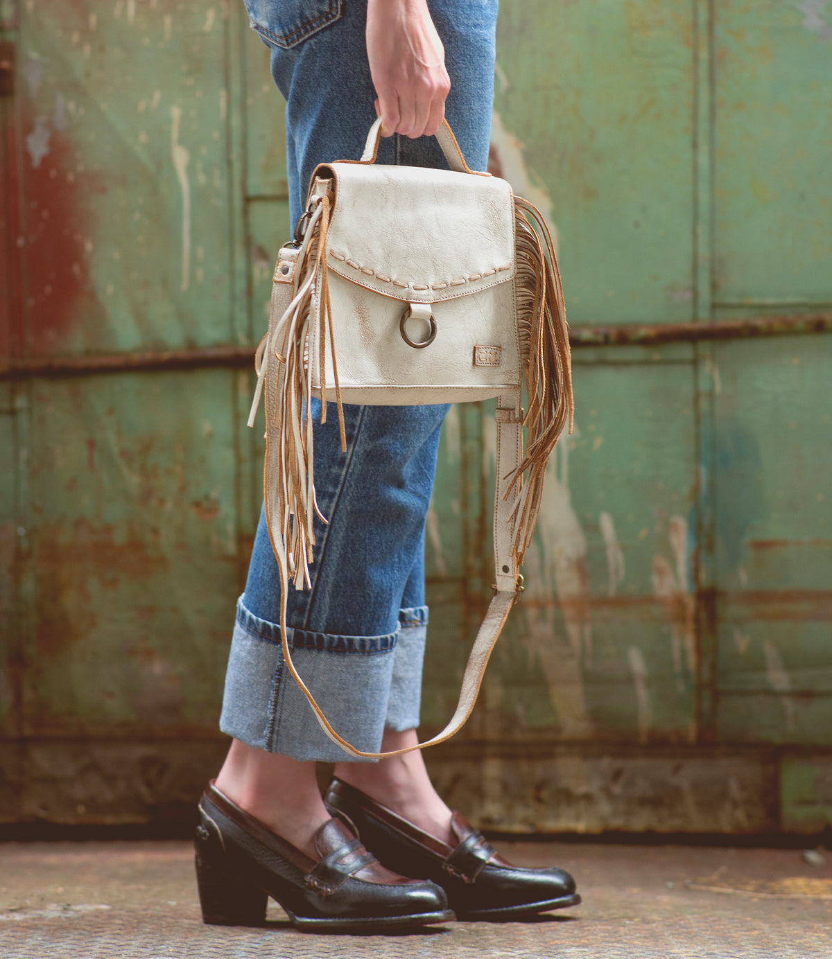 Hidden is a compact leather crossbody bag packed with fun fringe. It sits upright, has a small handle on top to hand carry, and also comes with an adjustable and removable crossbody strap. Add a touch of whimsy and flair with Hidden at your hip.