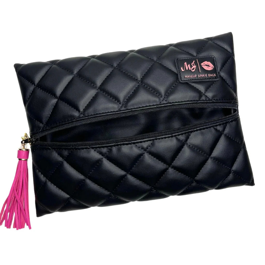 MAKEUP JUNKIE BAGS: LUXE ONYX QUILTED FLAT LAY MAKEUP BAG