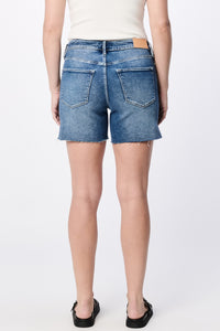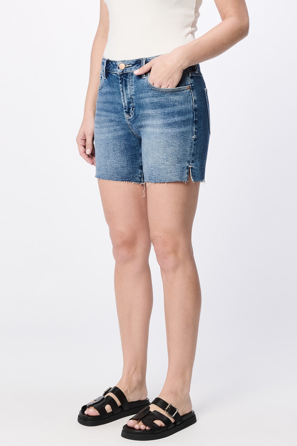Step into effortless style with the Julian shorts in medium wash, featuring a chic mid rise and raw cut hem for a casual yet polished look.