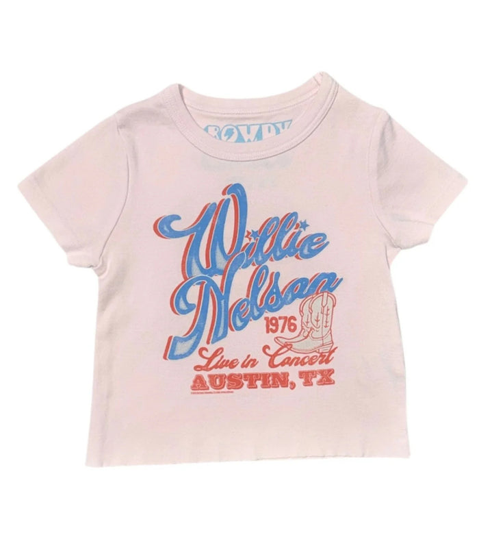 ROWDY SPROUT: WILLIE NELSON 1976 CONCERT FITTED TEE - PREPPY PINK