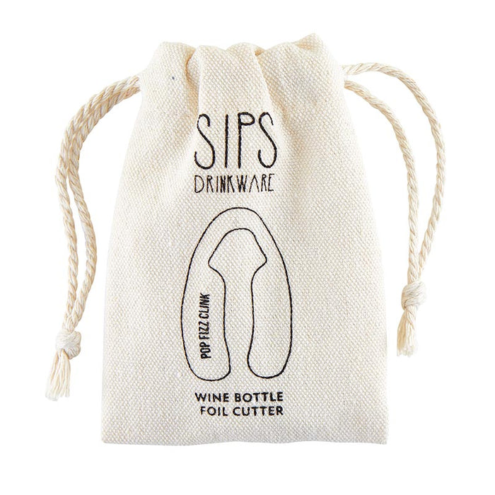 SIPS DRINKWARE: STAINLESS STEEL FOIL CUTTER IN DRAWSTRING POUCH - POP FIZZ CLINK