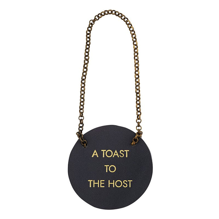 LEATHER BOTTLE TAG - A TOAST TO THE HOST