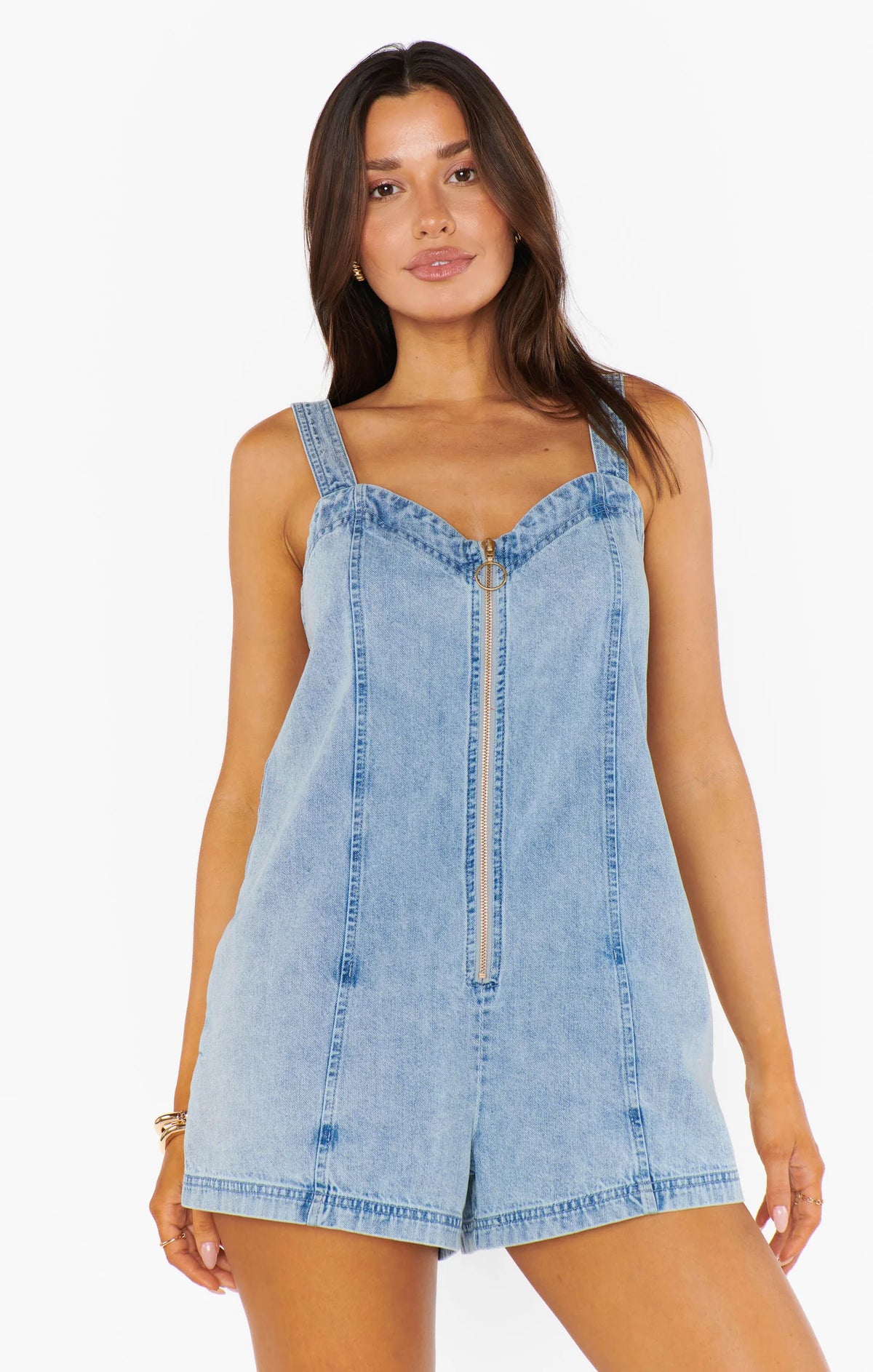 Get ready for a good time in the Mission Romper! Crafted from structured denim, this flirty romper features a sweetheart neckline, convenient side slip pockets, and a front zipper closure for added style. Pairs well with anything from sneakers to cowboy boots for a look that will take you seamlessly from day to night.