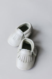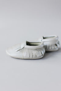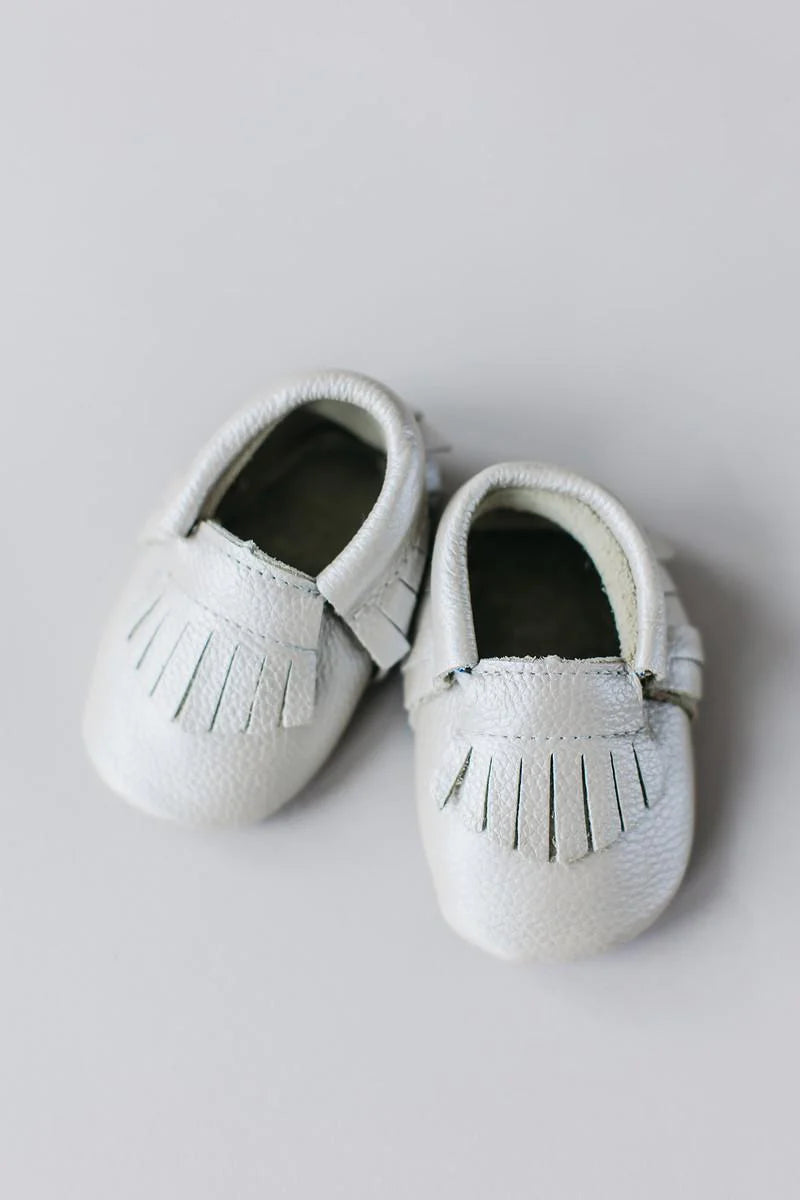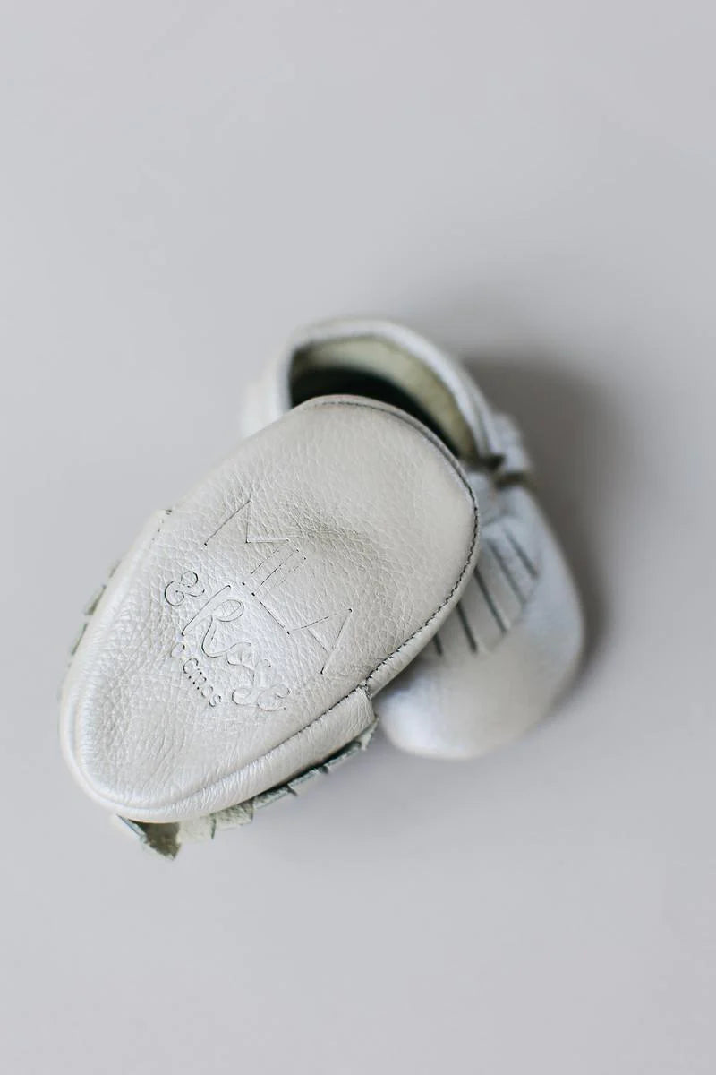 MILA & ROSE: SILVER METALLIC LEATHER BABY MOCCASINS