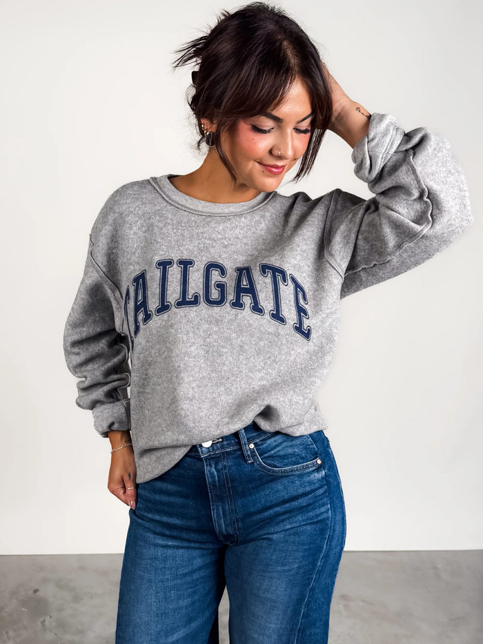 PROJECT SOCIAL T: 'TOUCHDOWN/TAILGATE' REVERSIBLE SWEATSHIRT- HEATHER GREY