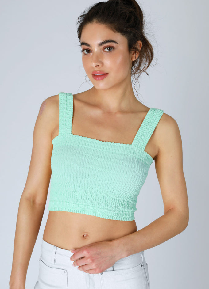 SHIRRED SQUARE NECK CROP TOP - ISLAND AQUA