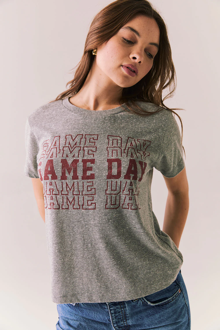 CHASER: GAME DAY TEE – GRAY VINTAGE-STYLE TEE WITH MAROON GRAPHIC