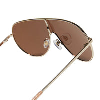 that's hot! these paris hilton inspired sunnies are a throwback style to her much beloved 2000's shield shades. featuring a delicate metal frame, full coverage shielded lenses with options for polarization, and adjustable nose pads- celebrate the golden age of y2k fashion with tarzana sunnies. choose from 4 sultry, neutral colorways and wear with confidence. it's giving music video girl.